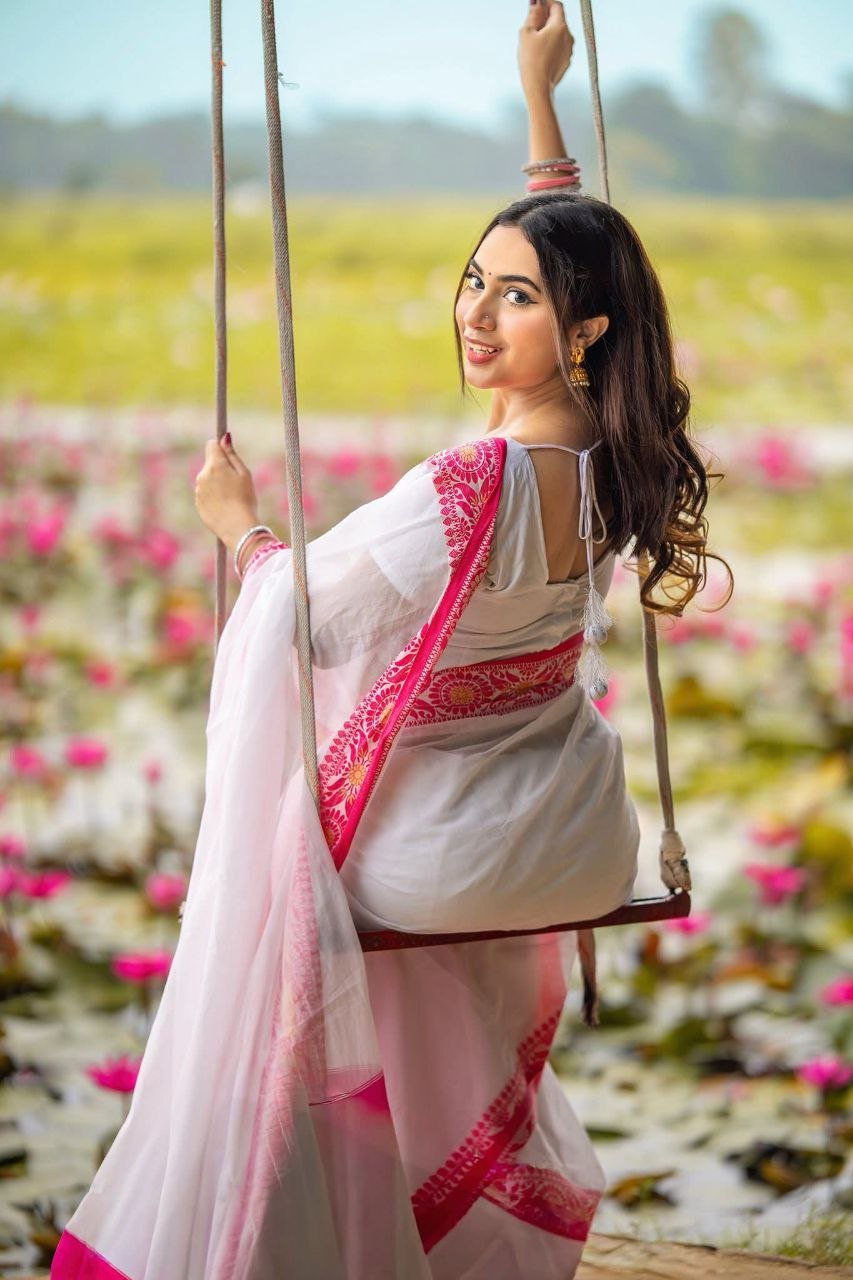 শাড়ির পুরো অংশে সূক্ষ্ম সুতার কাজ করা, যা আপনার লুকে আনবে অনন্যতা।