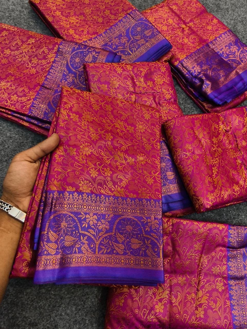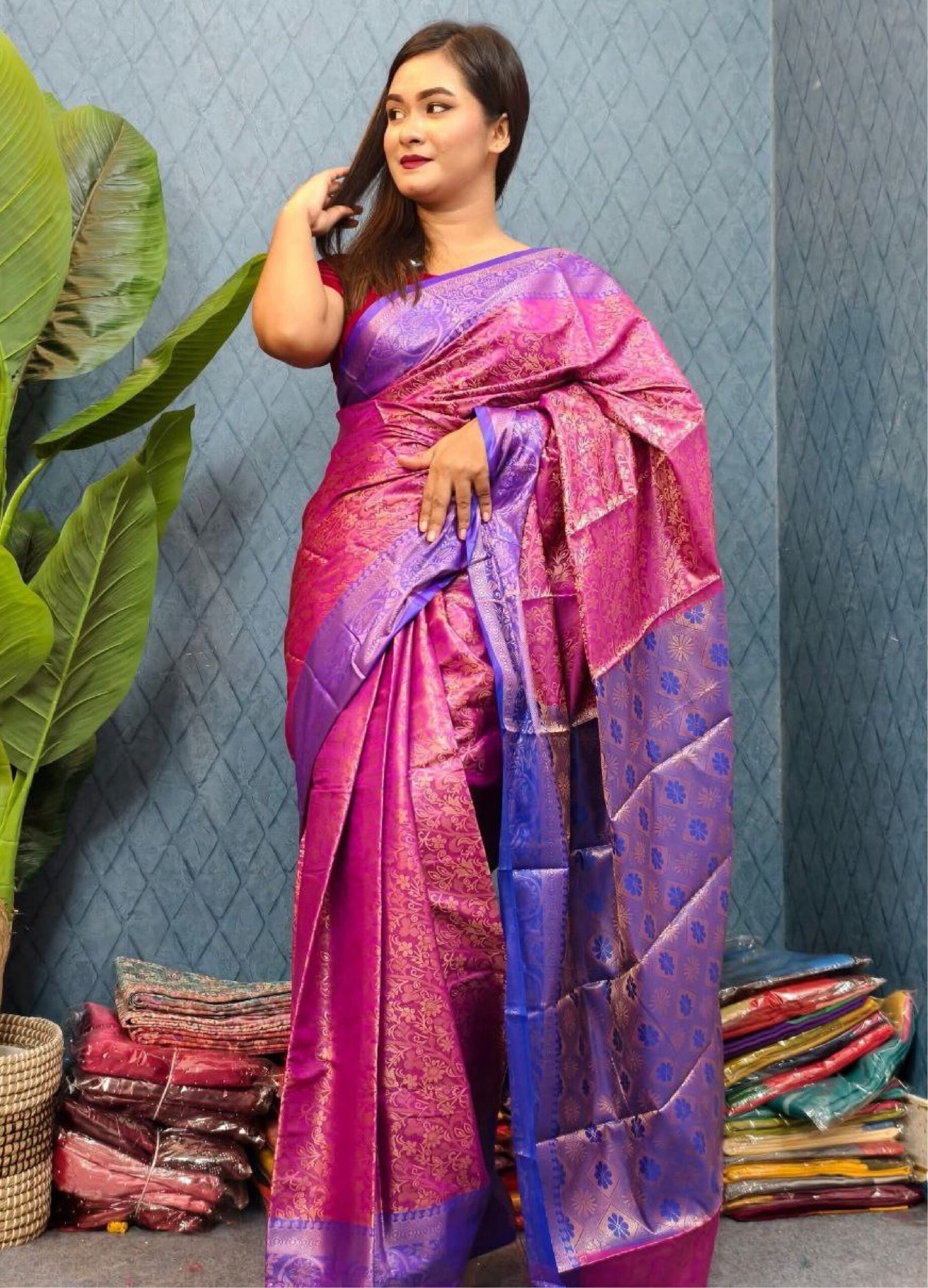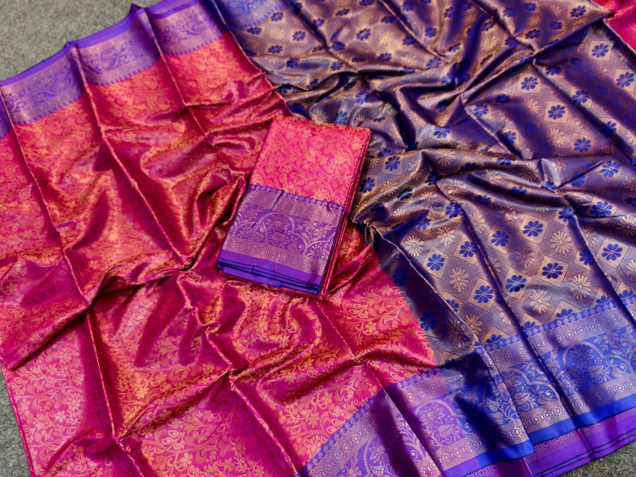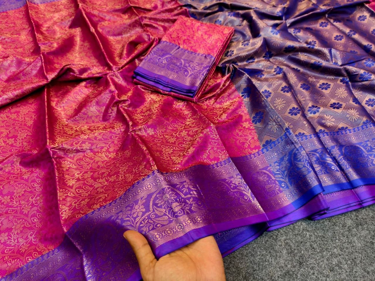কালার কন্টাস্ট কাঞ্চি কাতান শাড়ি + ব্লাউজ পিছ (code-37)