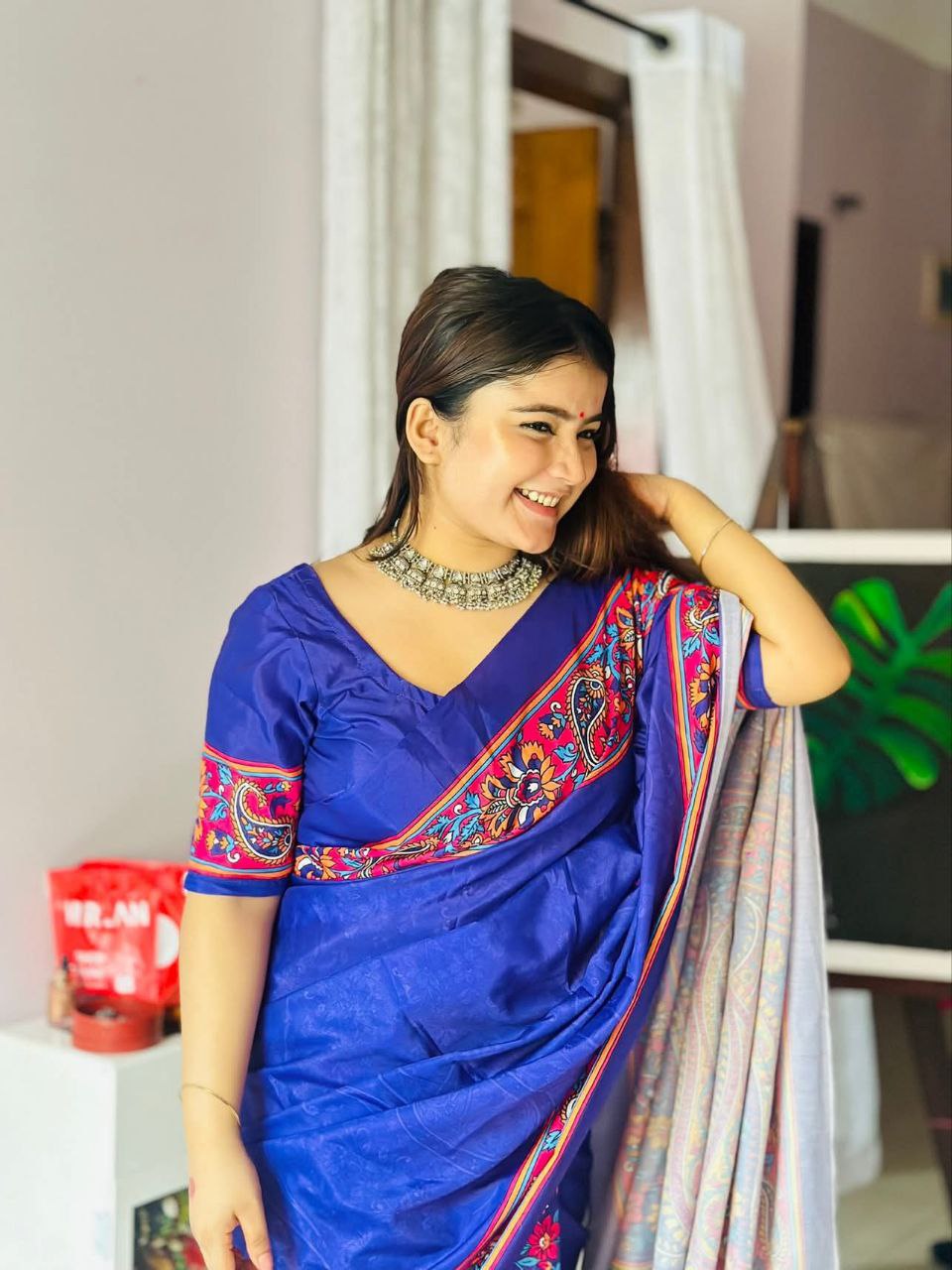 শাড়ির সাথে সেম ম্যাচিং ব্লাউজ পিস রয়েছে, যা আপনার স্টাইলকে সম্পূর্ণ করে।