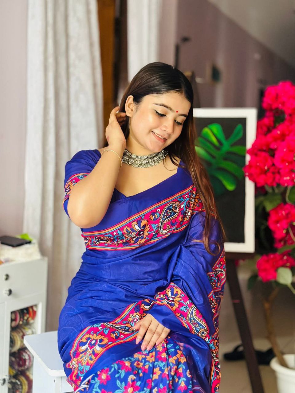 অরিজিনাল মসলিন সিল্ক ডিজিটাল প্রিন্ট শাড়ি + ব্লাউজ পিছ (code-34)