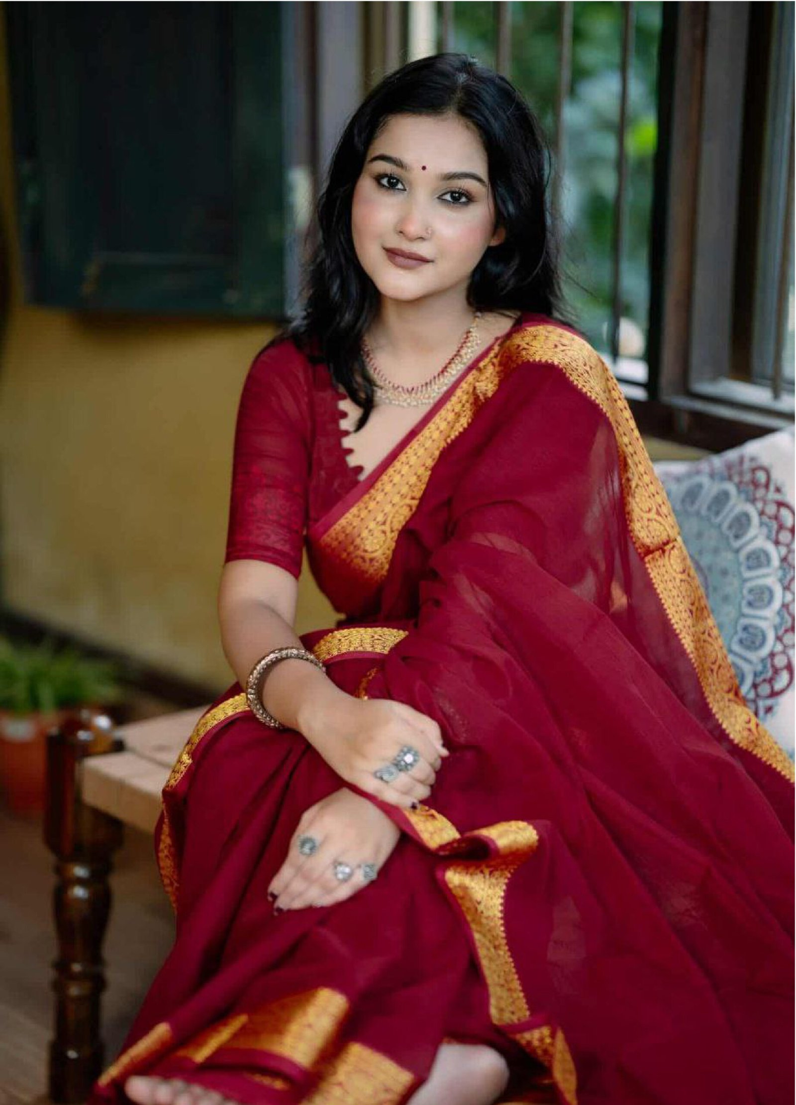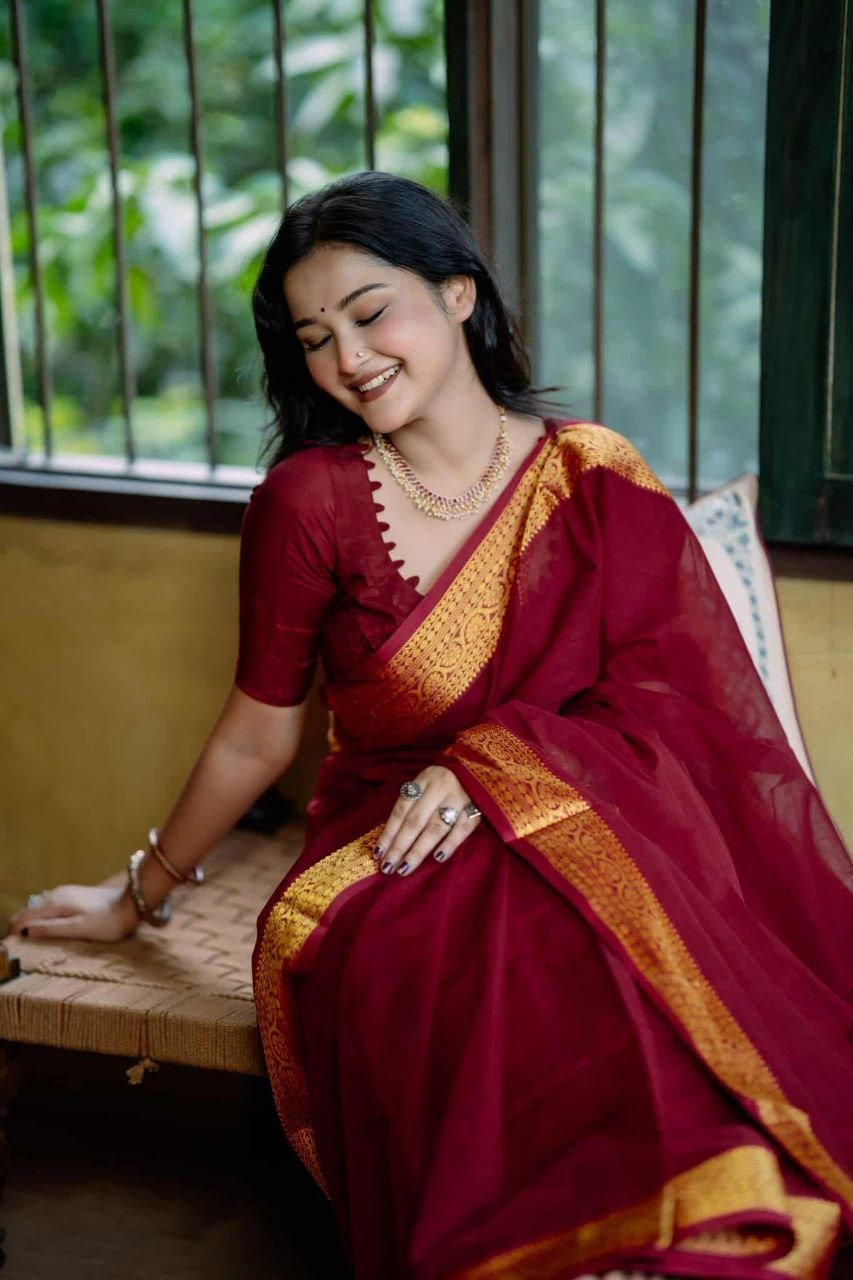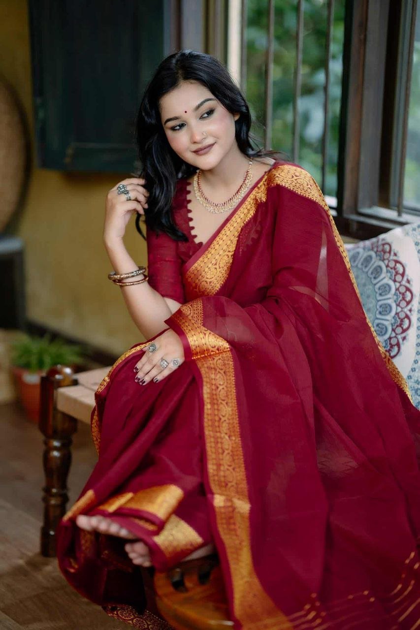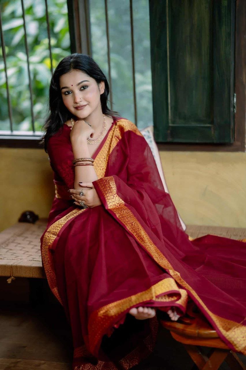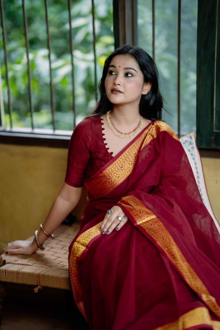 শাড়ির পুরো অংশে সূক্ষ্ম সুতার কাজ করা, যা আপনার লুকে আনবে অনন্যতা।