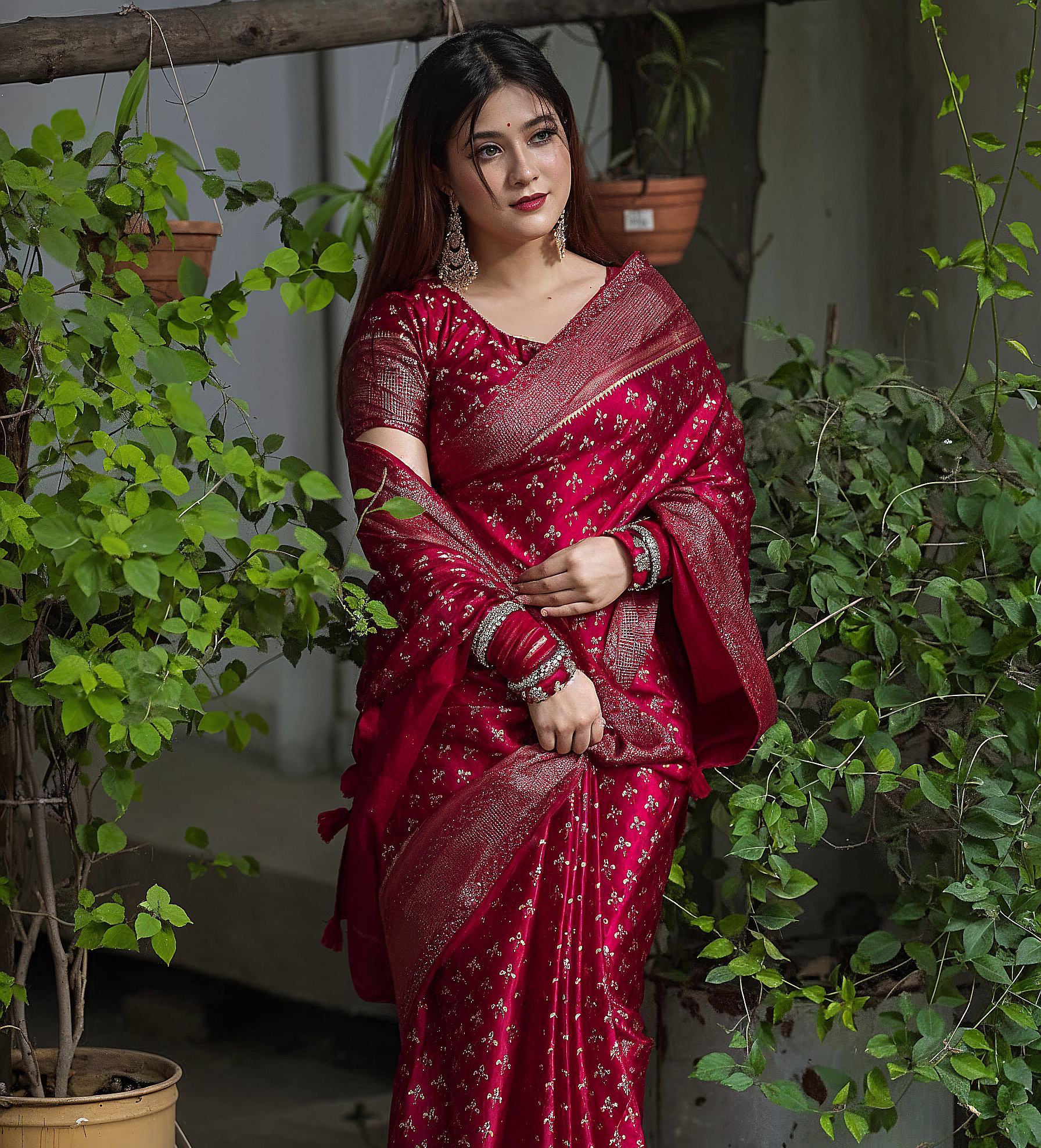সফট সিল্ক কাশ্মেরী কাতান শাড়ি – ম্যাচিং ব্লাউজ পিচ (code-14)